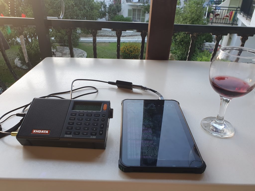 more food at around 7pm local time, and then half an hour spotting FT8 sat on the balcony as the sun goes down.