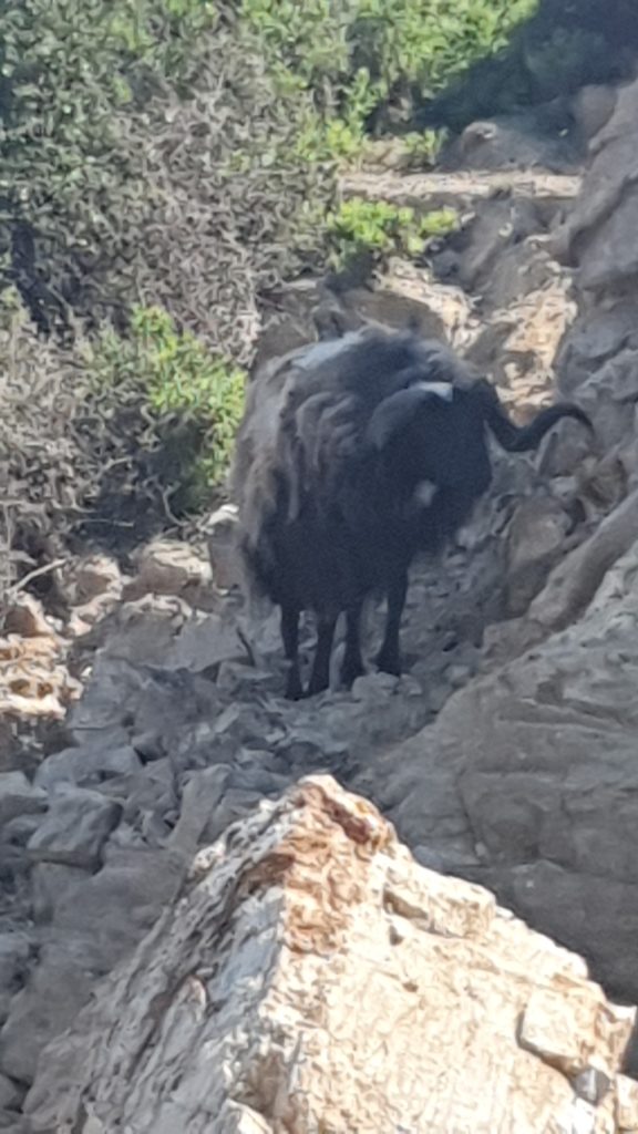 Angry goat is back guarding the path on the down climb approach. He has been absent for a few days, but now blocks the path